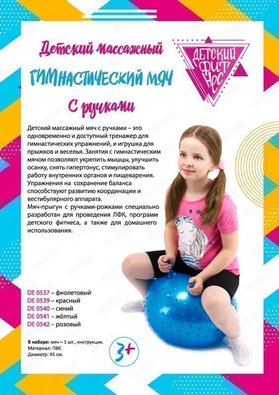 Детский мяч-попрыгун предназначен не только для активных игр и веселья, но и для выполнения гимнастических и лечебно-профилактических упражнений. Занятия с массажным мячом улучшают осанку, укрепляют мышцы ног, рук, спины, брюшного пресса, и всего мышечного корсета. Гимнастический мяч-попрыгун оснащен двумя ручками, за которые удобно держаться во время прыжков или использовать как стопор при выполнении упражнений. Мяч-прыгун с ручками-рожками специально разработан для проведения ЛФК, программ детского фитнеса, а также для домашнего использования. Преимущества: